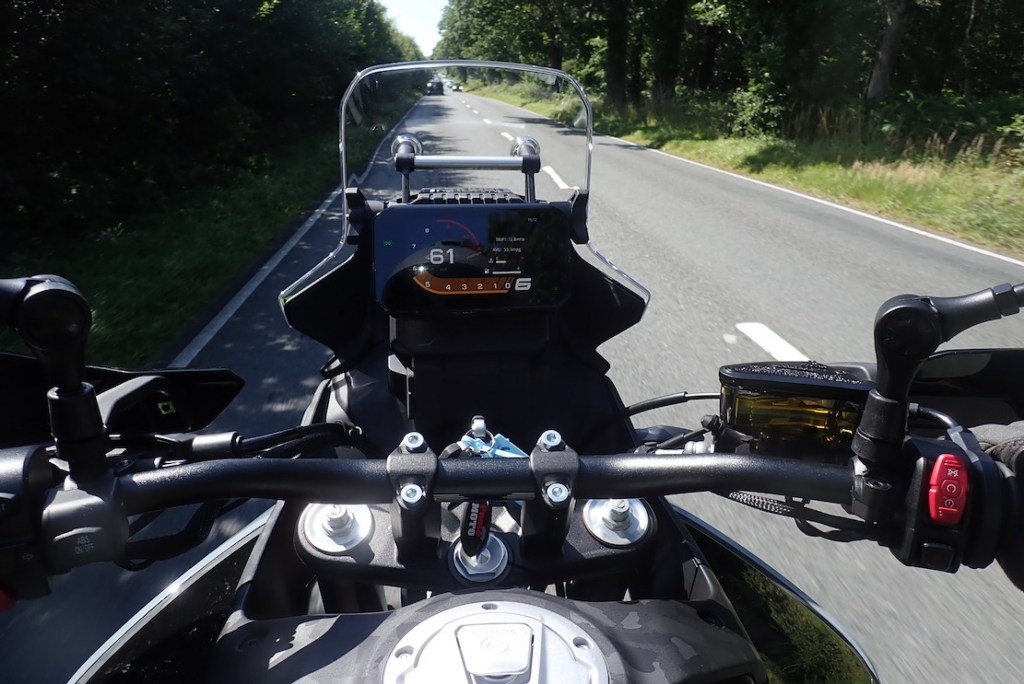 Fitting the Montana for an afternoon ride, I realised I actually like having it close at hand, not out at arm’s reach. That’s partly because my trusty Montana 680 has a small, dim screen compared to mobiles. And it’s also heavy, so up on the screen bar is not a great location with the inertia and hammering.