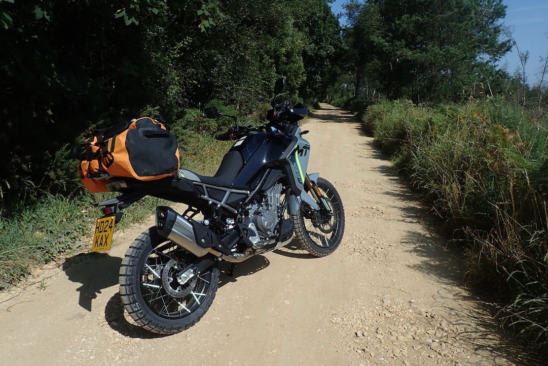 Having stock ‘MT’ (tubeless) wheels is a real treat. No need for my usual sealant bodging which I’ve been doing since my XT660Z in 2008. They’re CFMoto branded with a nice grainy finish. I do hope they’re up to some moderate rock bashing without taking a ding and causing a slow leak. If it can’t be knocked out, a good tip is to deflate then jam a bit of rubber strip or even silicon sealant under a ding. As it is, I tend to run all my home-bodged TL tyres on the firm side (25psi +) to avoid rim damage, and let the suspension and tyres do their job.