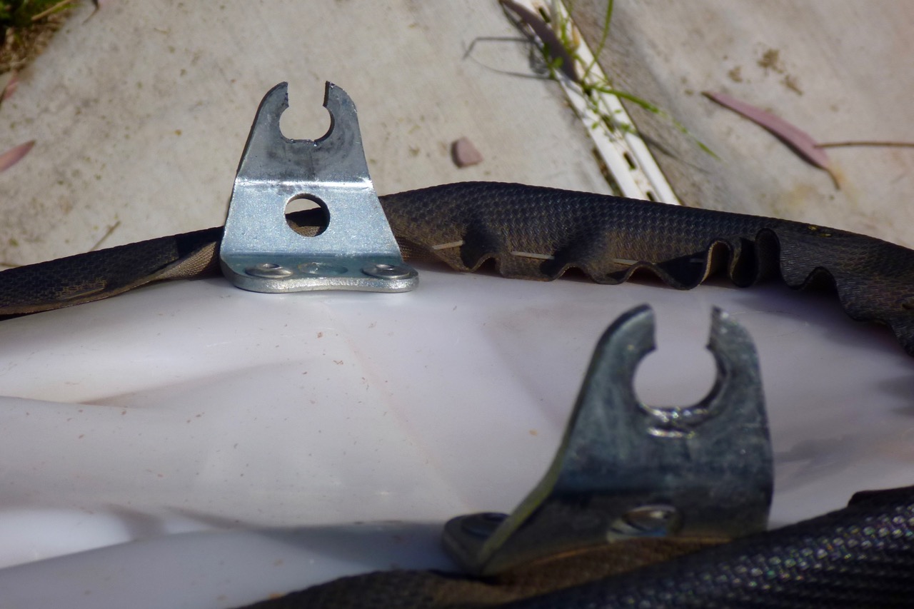While the seat was off Al reminded me of the old seat mount trick: cut the tabs open (lef) so you only need to loosen the mounting bolts to slip it off.