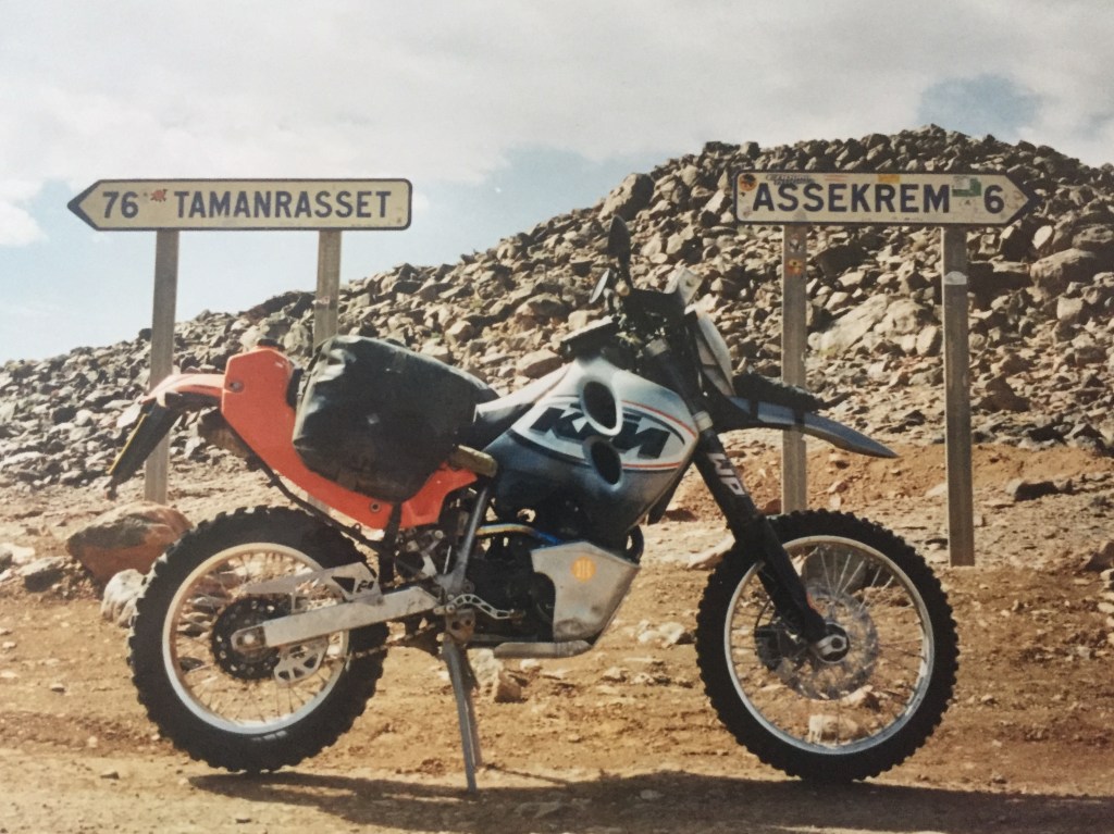 On the left, a KTM 640 with now rare Acerbis side tank and an Adventure main tank giving a total range of 700-km.