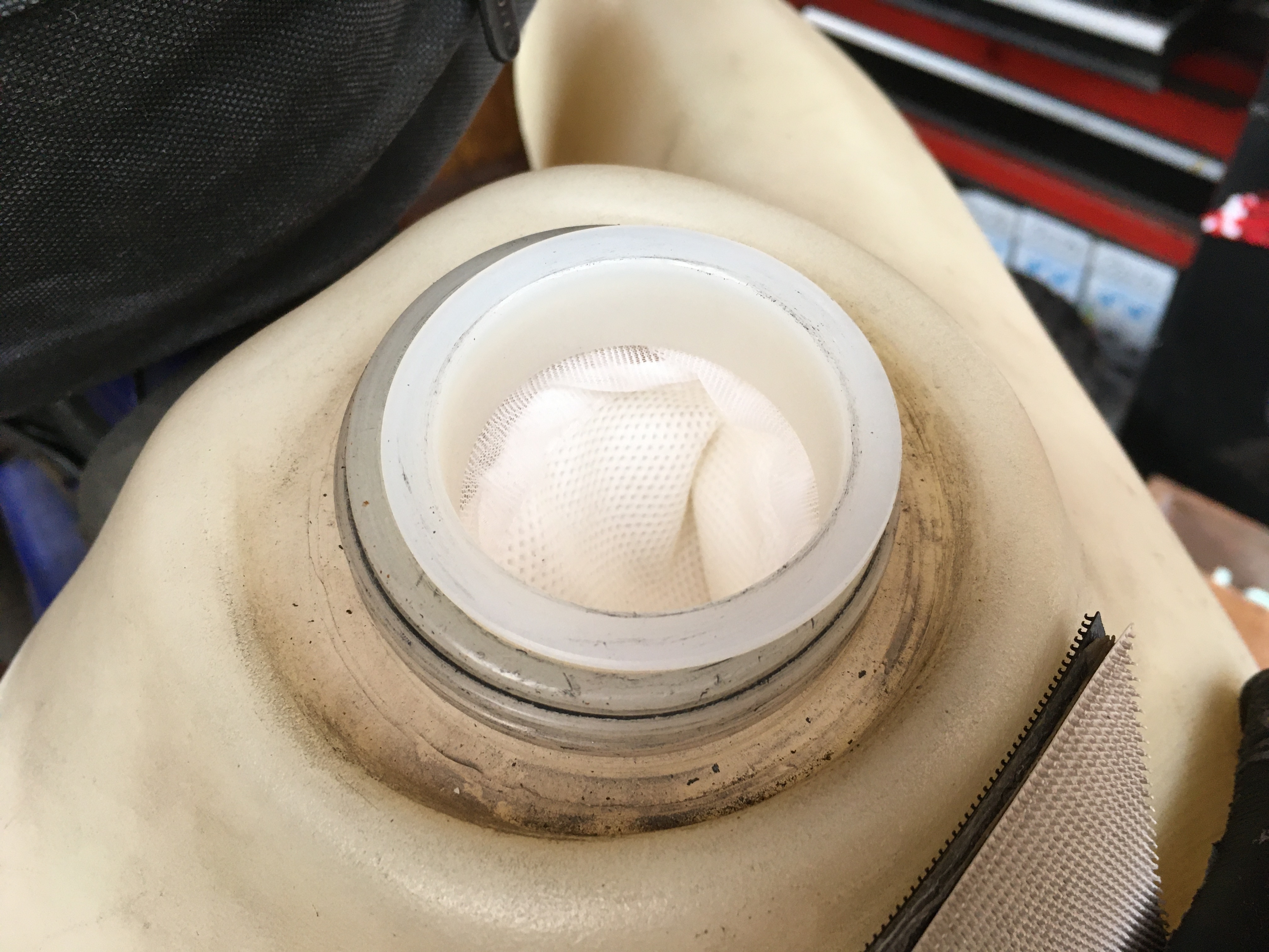 Fuel sock filters like the Gugatech below, fit into a tank’s screw-on filler mouth, catch crap and even water before it gets to your injectors or carb, and can be easily cleaned.