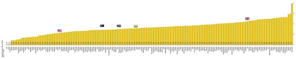 Image below: world fuel prices at this update (source). As always, Iran, Venezuela and Libya barely register, with Hong Kong at over $3 a litre. The cost of crossing some countries will vary greatly, and at some borders it pays to arrive either near-empty or near full.