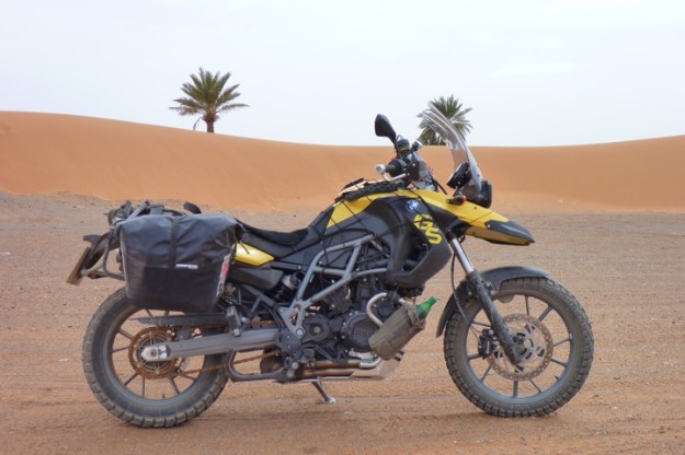 Spain and Morocco in March 2012 on a BMW F650GS SE. to update my Morocco book. The bags were used with a kit bag of camping stuff across the back seat but that got stolen early on so most of the time I just had the Monsoons along, plus a small tent and bag I got lent.