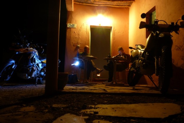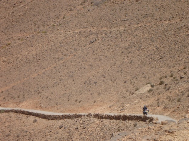 I complain about them being too wide on the GS (right), but it’s just occured to me that the stiffening plate you insert to give the bags form could easily be trimmed or even removed altogether to make a more saggy but less wide profile. I wish I’d thought of that in Morocco. As it is, my bags picked up passing thorns as well as tears and scuffs off passing rock faces and were a nuisance on narrow mountain tracks where I was forced onto lines I’d have preferred to avoid. They are I suppose no wider than a hard-cased GS1200, and at least a soft bag deflects you less when you bump into something hard, and hurts less when you bump into someone soft or have the bike fall on you, all of which is reassuring and the reason we go soft, is it not?