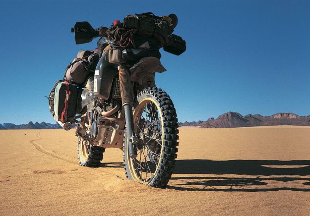 Tyres include Continental’s TKC 80 on the Tenere above, a discontinued Michelin T63 (replaced with Anakee Wild) on the fallen XRL, an original Michelin Desert on the black Tenere below.