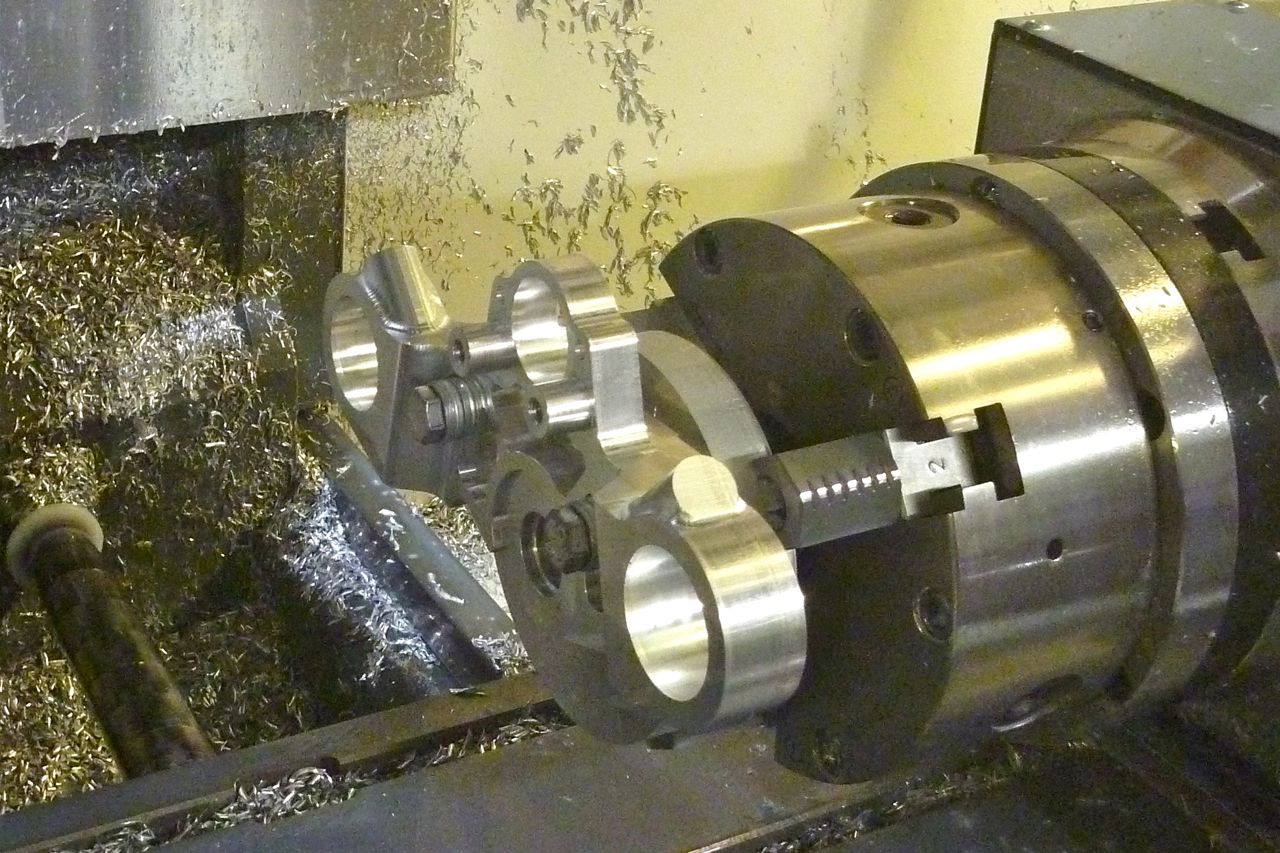 Just a couple of days before I’m off and I’ve finally got the CB-X converted to full Level III spec at Rally Raid. I started the job at home by fitting the clever drop top clamp, precision milled on John’s CNC 4-axis milling machine (right). Marvel what a 5-axis miller can do in this mind-boggling vid. The clamp enables positioning the fork tops 20mm lower which with the 30mm longer damper rods gives two inches more travel and room for the bigger wheel. It’s a more expensive solution to screwing on dodgy fork extenders – something I looked into when trying to Tenerise a TDM900 earlier in the year.