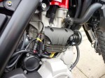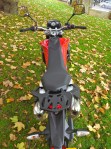 The fuel range was mentioned above – I like frontal and low tanks; time will tell. Meanwhile a mate has sold me a full metal bash plate off his XCh. I’m waiting for new clamps from the US for the fat bars to re-use my q/d Spitfire windscreen from my CRF-L. A brief stand on the pegs found the bars were not too much of a stoop (and the legs/knees slotted in better than a Sertao) but some bar risers may help.