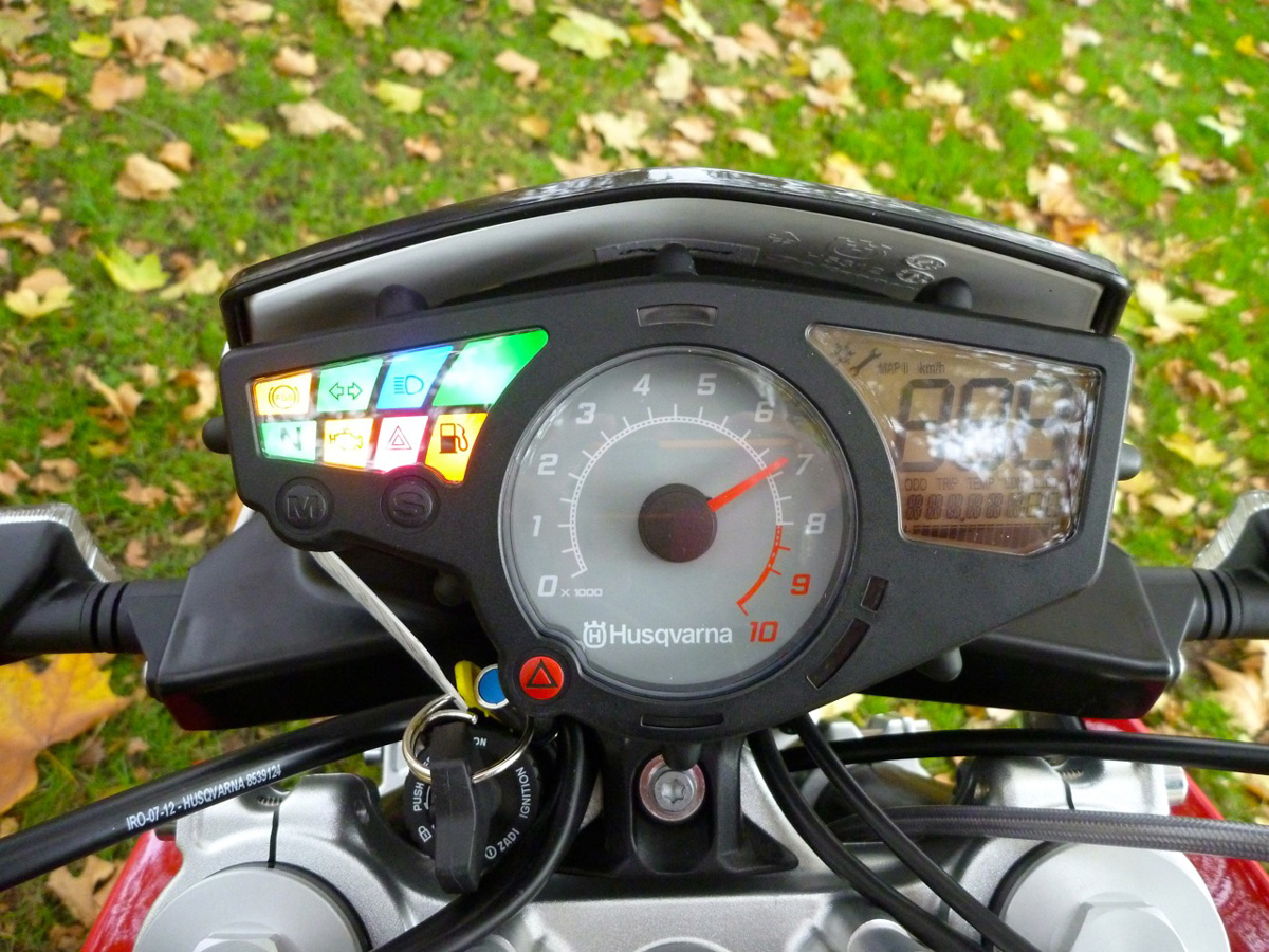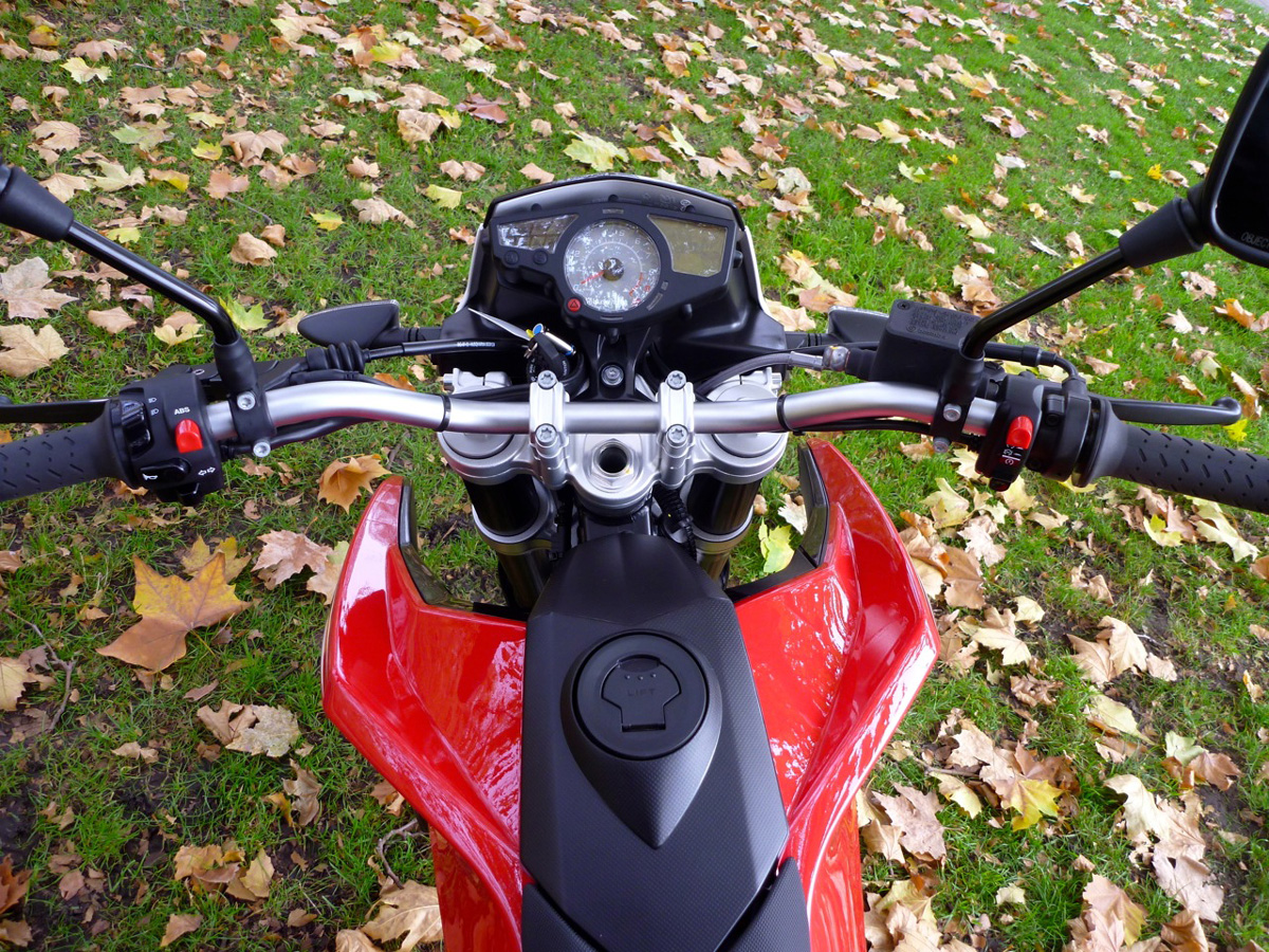 Mirrors were good, so surprisingly was the stepped seat with the hump far enough back. Hand and foot positions suit me too, though the levers felt a bit far away, dash info is basic with a huge speedo read-out. I have yet to meddle with the setting buttons.