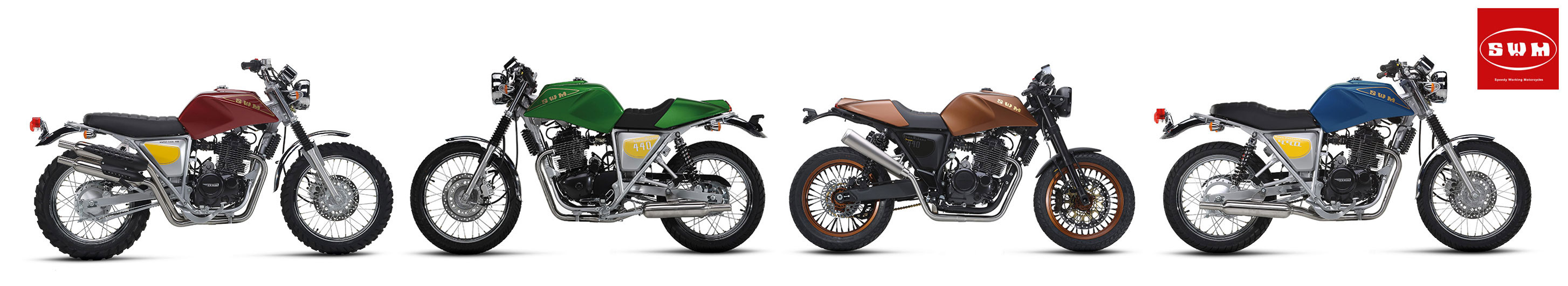 Established in the late 90s, Shineray (as in ‘Shine-Ray not ‘Shiner-ay’ if the company motto above is any guide) are one of the Chinese marques said to specialise in trail and off-road machines. In 2014 they bought the Italian SWM name, last heard of in the 1970s. Around the same time Shineray also acquired an old factory off KTM in Italy with a batch of Husky models. That SWM Superdual on the left uses the old 600-cc Husky TE630 engine, but in the flesh was not so inspiring. Shineray/SWM have since diversified into SUVs.