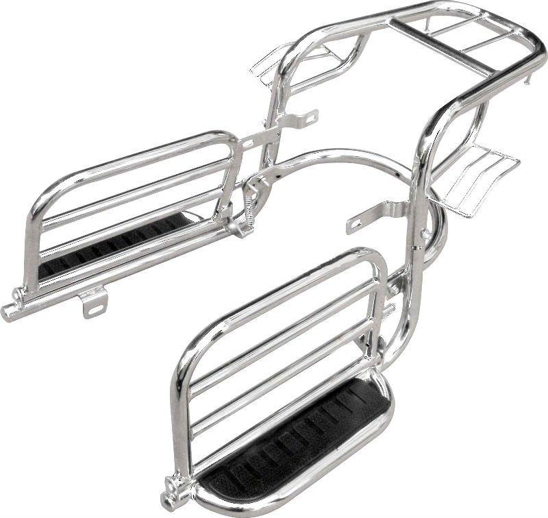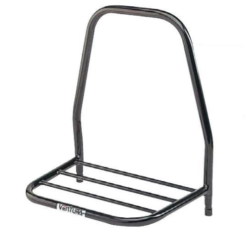 With a closer look you can see the pivot/support works by lowering on a spring to rest horizontally on the pillion footplate. Note the sub-racklets at the back, too.