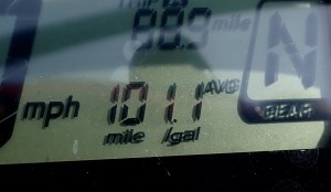 The 300L has one of those handy average fuel consumption displays and my ride up to ABR saw it settle at 102mpg as I rode through the gate. Pretty good but this is an estimate. For the true mpg I evaluated the bike’s odometer error off the GPS over 200 miles. Result: the bike indicated 205.6 miles over a GPS recorded distance of 200 miles. Not bad but 2.5% over.
