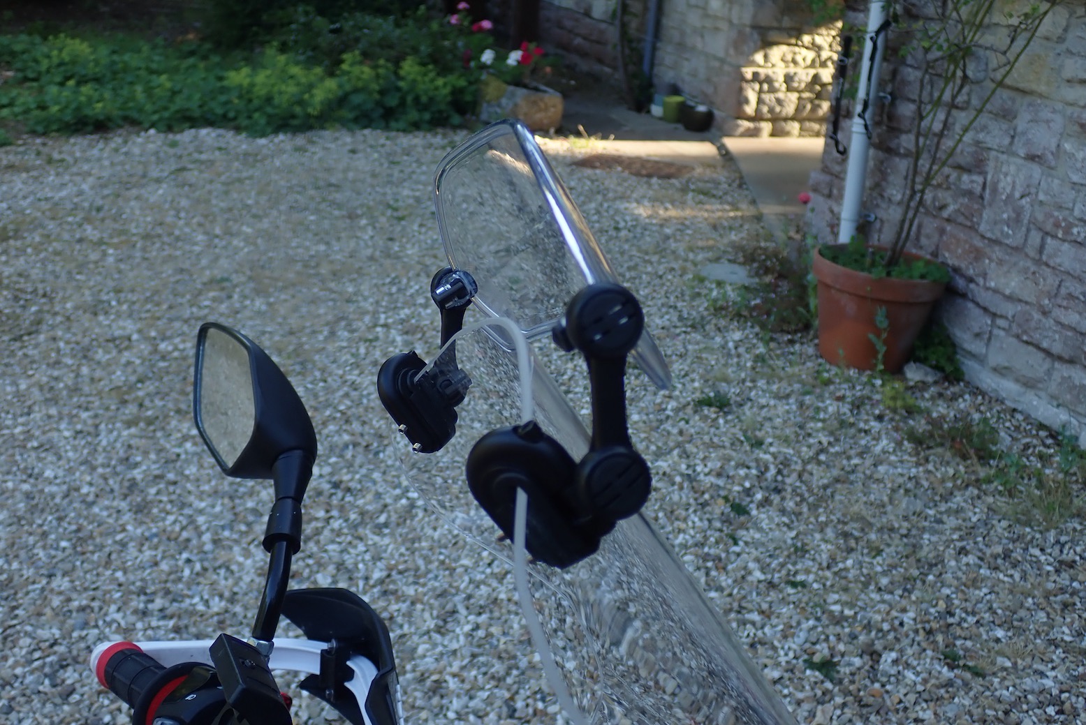 I dug it out, made sense of the instructions and decided to clamp it to the screen with a view to drilling and bolting it on if it proved effective or necessary (you get both options in the mounting kit). Articulated arms on adjustable splines lock it in position so you can set the optimal angle at a standstill. It looks like it ought to work funneling air up and over my head and looks better than the simple spoiler Touratech still sell and which I tried on my XT660Z 15 years ago. You can view my meticulously annoted Mileage Diaries here.