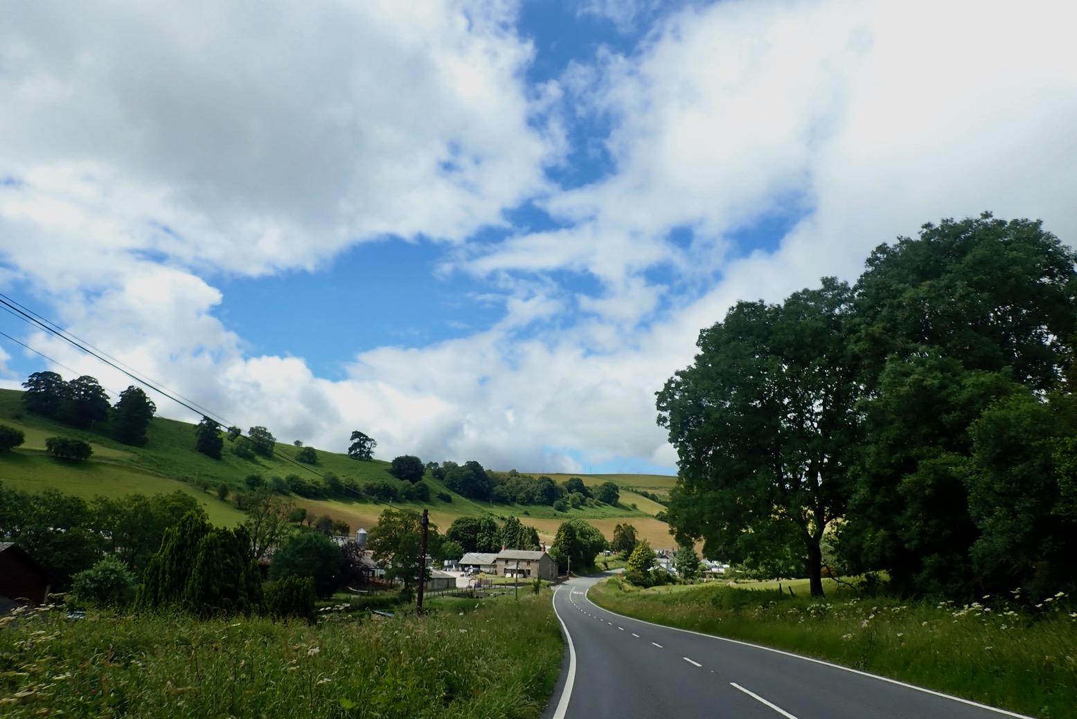 Rhayader – Wales’ trail-biking Mecca, such as it is – proved to be that turn-around point, but rolling through the town, no cafe jumped out at me invitingly. So I followed a single track road out towards Abbeycwmhir on the GW and where a back way wound its way on to Llanbadarn Fynydd (GW) which I knew had a cafe.