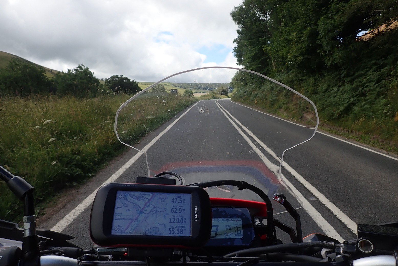 The next fill up on the way home included the rushed ride back from Wales with the display now indicating ’91mpg’. I put in 11 litres over a true 217 miles, which is 350km. That was 31.8kpl or 90mpg. A lot more accurate and oddly, a big improvement on the slow ride up, despite the faster pace. I suppose a full tank’s worth at steady pace may have helped, or could the bike’s computer be ‘learning’, as I’ve read they can do? We shall see but I am still hoping to get a true 100mpg one day.