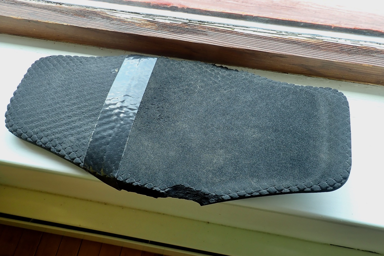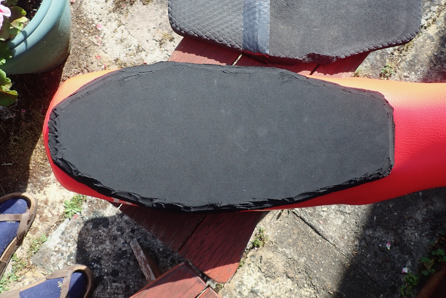 But fix one thing and another flaw becomes more apparent. My glued up join between the two bits of old neoprene was noticeable. Can’t be having that. I have time so may as well spend it trying to get it right.