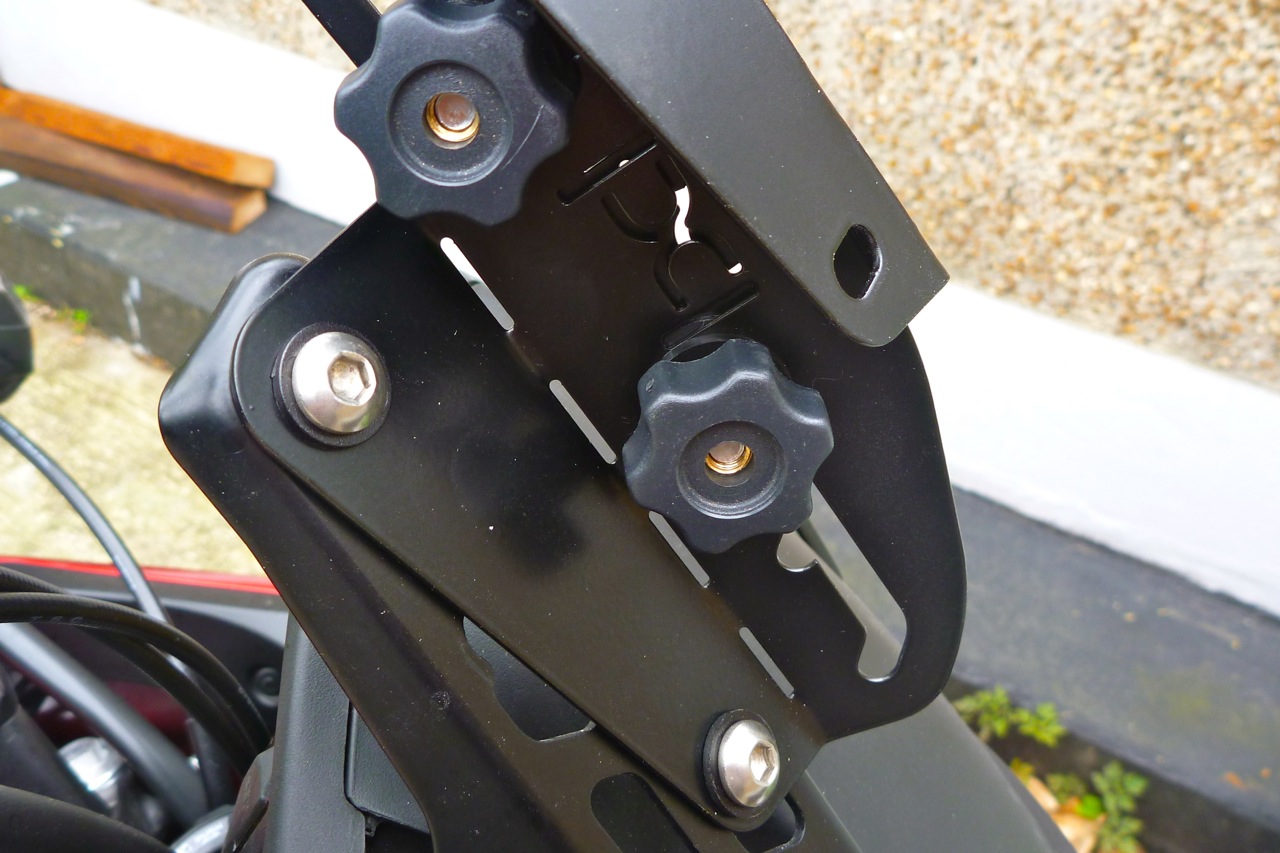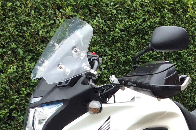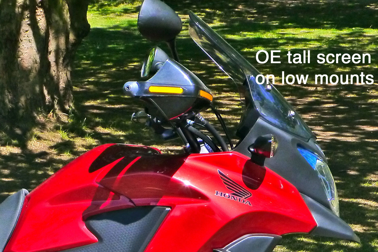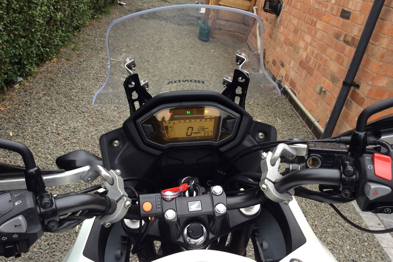 With me at 6′ 1″ plus riding boots, the Honda handlebars are too low for standing up for anything longer than an impact-absorbing jolt. Partly this is because they have to be set back so the Barkbusters can clear the dash on full lock (left – look long enough and it makes sense).