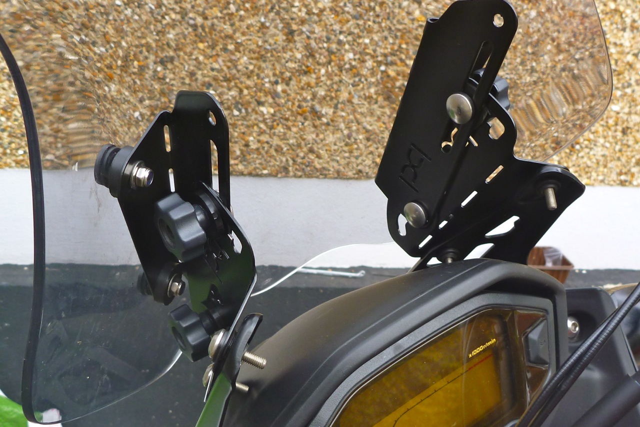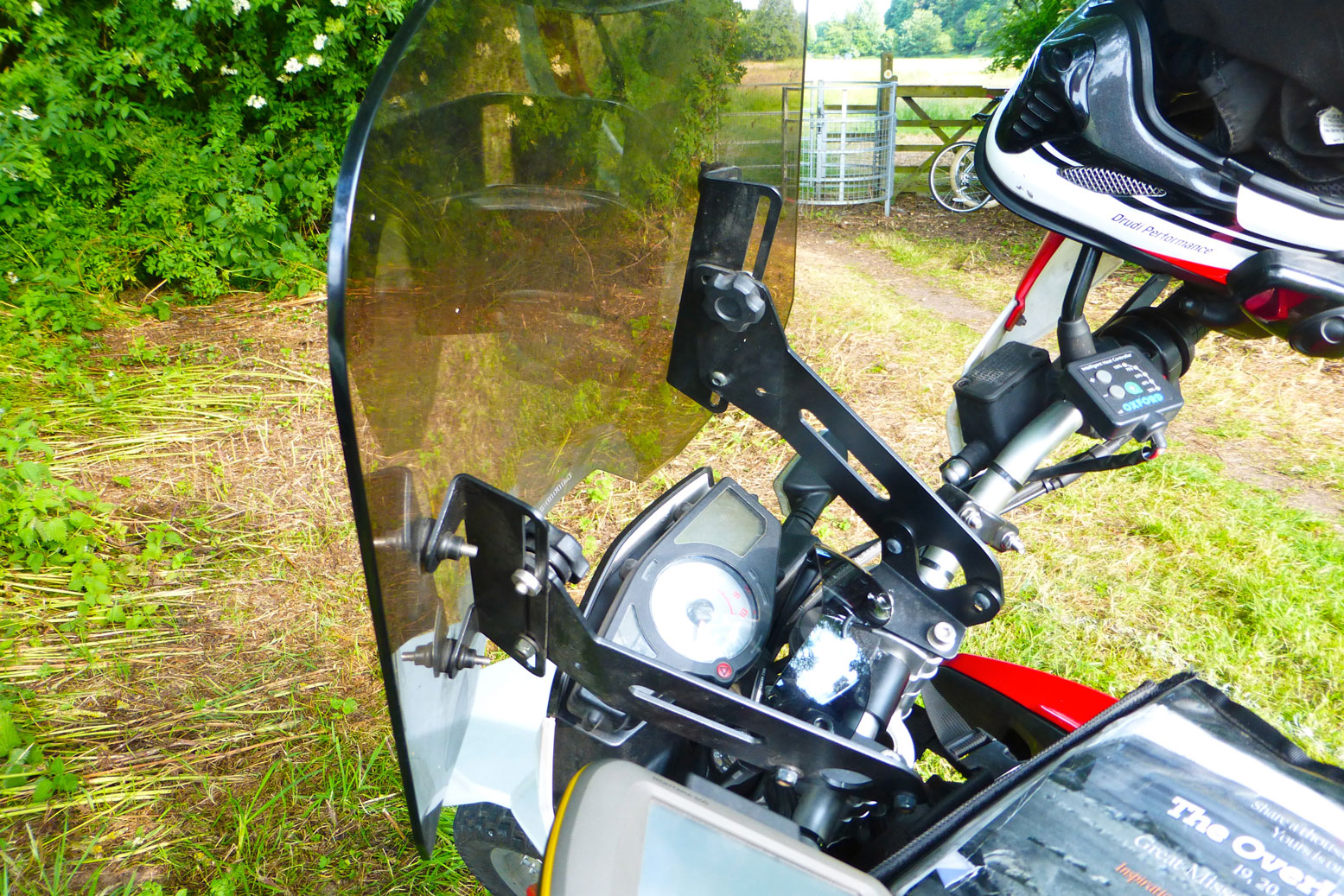 The Palmer Products adjustable screen mount was of course great for the two-day 115kph transit of Spain and northern Morocco. But the first afternoon on the piste proved that the added kilo of weight and forward displacement of the mounting hardware supporting a tall Honda screen would probably break something if left for too long (that ride is what probably loosened the cockpit bolts). As it was, the other guy with a similar arrangement on his F800 had some screen screws fall out.