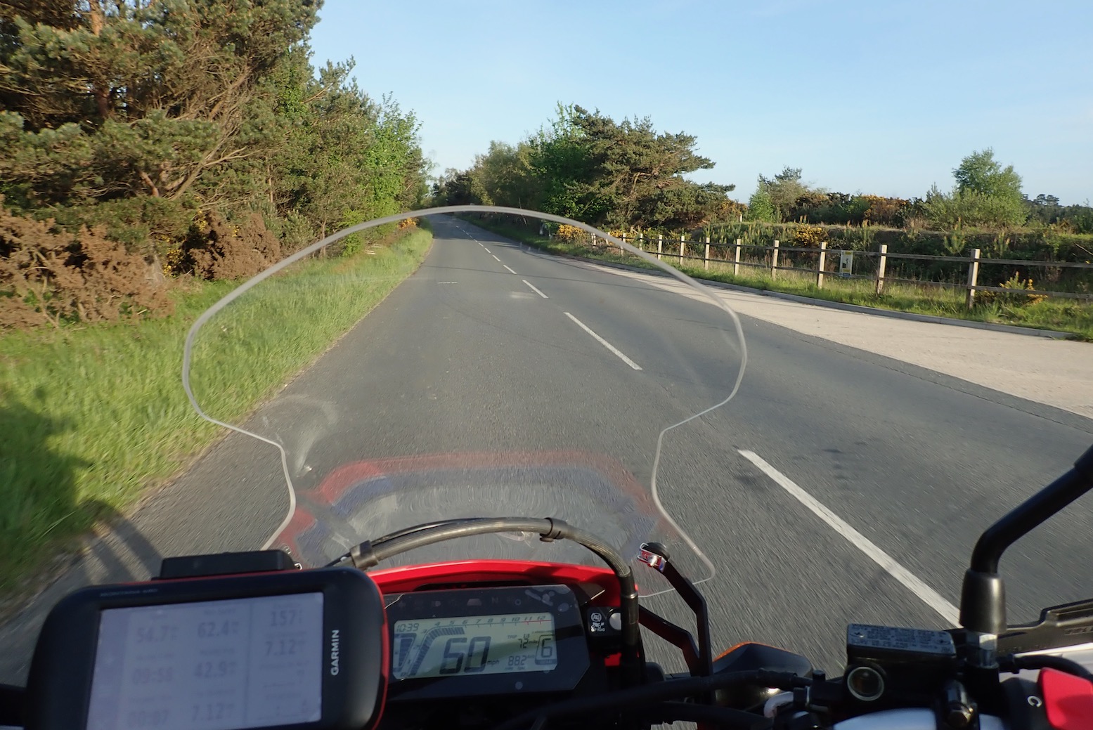 The 300L is so light it initially feels skittish; I wouldn’t fancy it in strong crosswinds. But the proper screen (and my Mosko jacket) helped hold back some heavy showers and the thinned-down seat (from Peak?) had just about 100 miles of padding left in it.