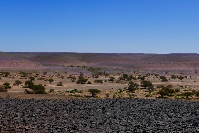 Leaving Tan Tan Plage. Up the coastal highway to Guelmim, then inland into the mountains where the skies are about to drop with a big crash.