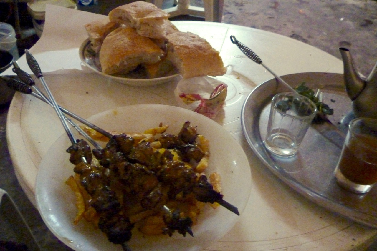 The dam up at Ouarzazate releases water daily to irrigate the gardens and palmeries all the way down to Mhamid on the Algerian border. Produce, eggs and meat as fresh as you like.