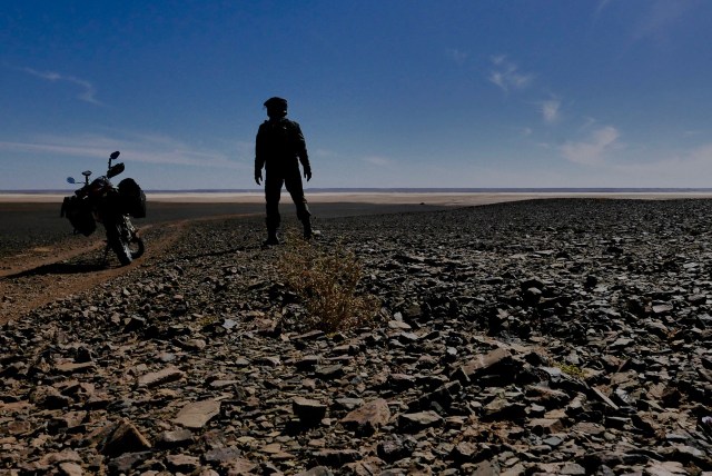After Tafraoute the road climbs steeply onto the western Anti Atlas. It gets bleak and darn chilly.