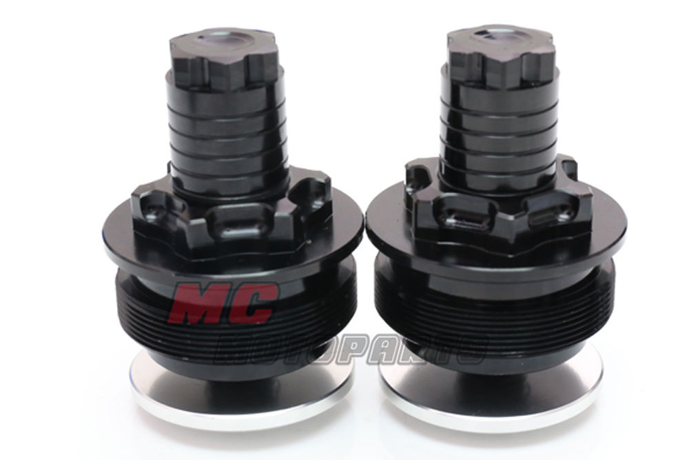 On the front I’m going to try out some inexpensive fork preloaders (left; £28) before probably resorting to an aftermarket spring (Got KTechs in the end, < £100), after which the preloaders will be a good back-up. There are also cartridge fork inserts (right) from the main suspension makers enabling preload and various damping adjustments, but they go for a staggering £500. Like the CB500X, the XSR comes with short springs plus a long plastic spacer. Seeing as aftermarket springs are the same, I assume this isn’t the cost-saving bodge it appears to be. Weight is certainly saved, though you’d think a full-length spring would have a more supple, progressive action,