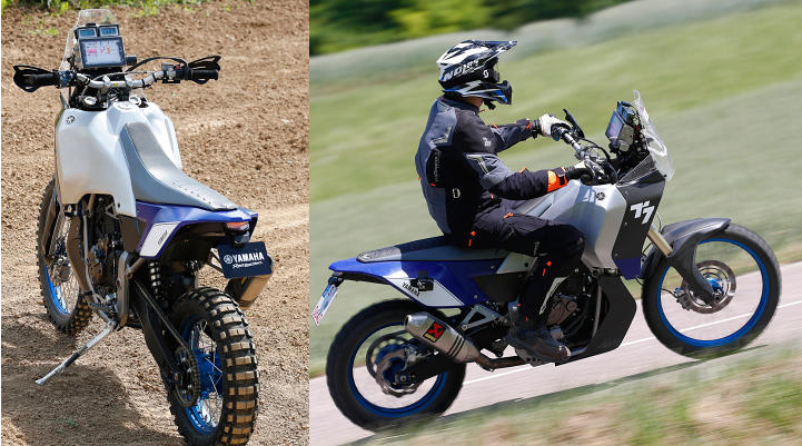 One important point that Jenny Morgan (Rally Raid 500X developer) notes with the XSR/MT07 is that the top of the near-horizontal shock (above left) mounts to a bracket bolted to the crankcase, not a frame member. A very hard bottoming-out could possibly damage the crankcase; a very complicated and costly repair. All the more reason then to fit a good shock, keep preload and tyre pressures on the high side (as I tend to do anyway), and where possible, resist jumps as pictured.