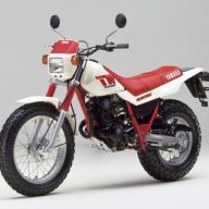 As the vid above reminds us, anyone can slap on some TKCs, but would you want to corner on a fat, 17-inch front Conti? I recall years ago a disgruntled mechanic told me off; he’d just shat himself taking my Pirelli MT21-shod Funduro (left) out for a spin. You need to ride on eggshells until you get a feel for such tyres. Cool-looking thought it may be, I just can’t see a rear TKC or similar put on a 17-inch XSR front wheel working well on loose surfaces. I’m certain the CB500X RR rode better on road and track with the 19-inch front wheel, so that’s the plan with my Yam. A good old Heidi-Hi K60 will do me.
