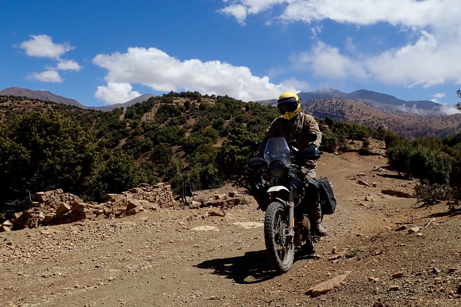 It must be down to the way the long-stroke, low compression, two-valve motor delivers it’s modest power, like something from the apogee of Brit biking half a century ago, but without a millstone for a flywheel, it revs more freely. The Himalayan may have the power of a CRF250L, but it has the torque of an XR400: 32Nm at 4250rpm (1150 lower than the XR). Combined with counter balancer and unexpected refinement, despite wide gearing it’s a very satisfying bike to ride. It won’t hurl you from bend to bend, it just chugs along steadily but without the sensation that you’re missing out or grossly under powered. The key is to maintain smooth momentum which is very much the riding style I aspire to. It’s an easy bike to enjoy on the empty roads and even emptier trails of southern Morocco. Duelling with congested traffic or tackling busy alpine passes may not be such fun.