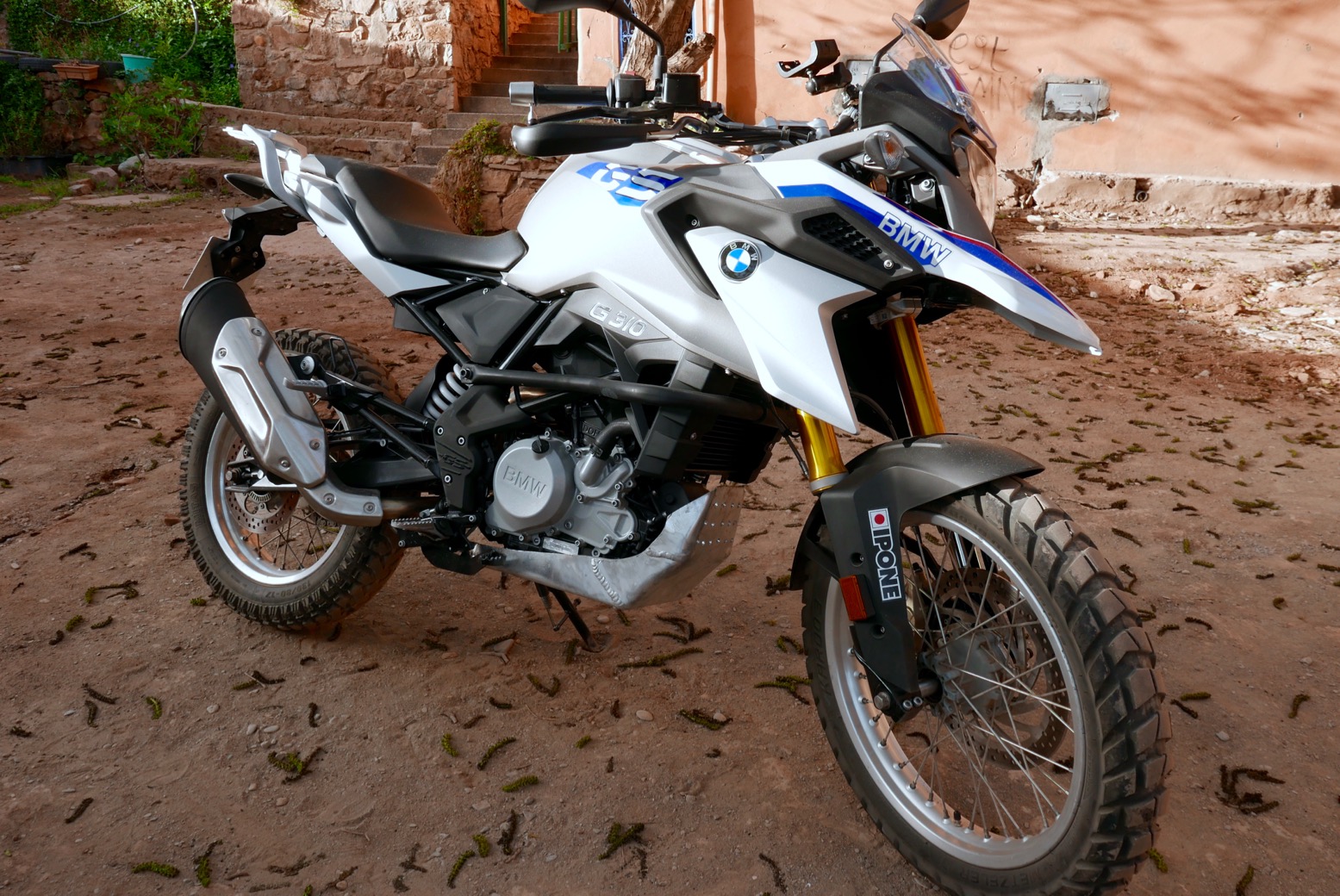 Judged on looks alone, I’d designate a few like the Dunlop D605 and Motoz RallZ at 70/30 road/dirt, The Michelin Anakee Wild I used in Morocco on my Himalayan (below) certainly worked great on loose, dry surfaces. But most are in my opinion 80/20 road/dirt or less, despite manufacturers’ claims. In terms of actual mileages covered, I’d say 80/20 is still a higher ratio of road-to-dirt than most long overland trips cover, but like other ‘all-terrain’ aspects of an adventure bike (big wheels, wide bars, low gearing; good clearance), when you need them you’re glad they’re there.