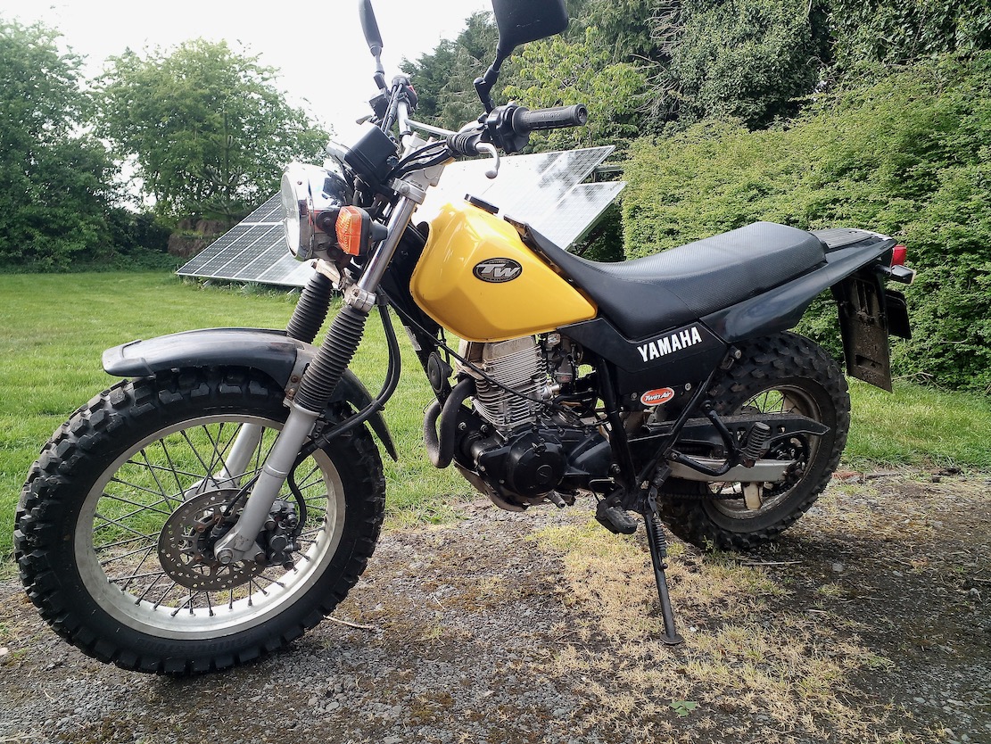 My Serow (bike #67) followed a false start with a Yam TW225 (right) built up by another mate (all these mates!) with an unusual 6-speed Serow/TTR motor. Half the Serow’s price, the fat-tyred 2004 T-Dub was there for the taking and looked like a fun, low-saddled, low weight, low-tech hack. But working on this autumn’s recce of the High Atlas Traverse (more soon) led to a dark night of the fuel delivery systems.