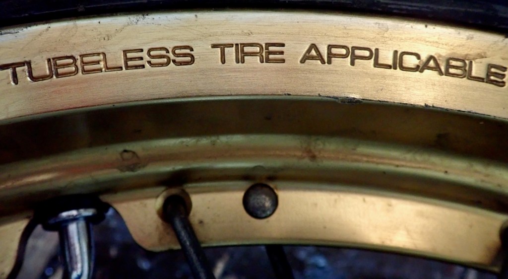 Another one of the Serow’s big draws is the stock tubeless rear wheel. Yay! no messing about with mastic and glues this time round. It uses a single inboard flange, while the front remains tubed. As fronts rarely get punctures, and 21s are easy to remove (and building an MT 21″ tubeless wheel costs a packet), I’ll leave a tube up front and carry a puncture kit.