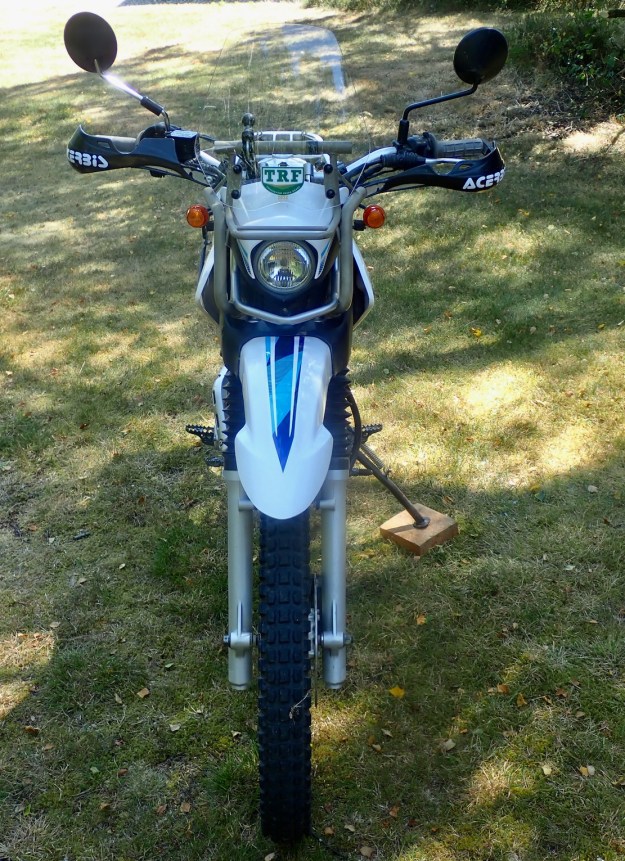 Picking up the Serow for the 100-mile ride home, I was straight away comforted by the gentle pitter-patter of the air-cooled motor. Having owned loads of similar machines, I suppose you might call that ‘ear memory‘. The gear change wasn’t great and adjusting the clutch didn’t change much, but it’s no worse than last year’s new 450MT. At the speeds I reached, barely 60mph, the screen seemed to work fine with no need for added spoilers.